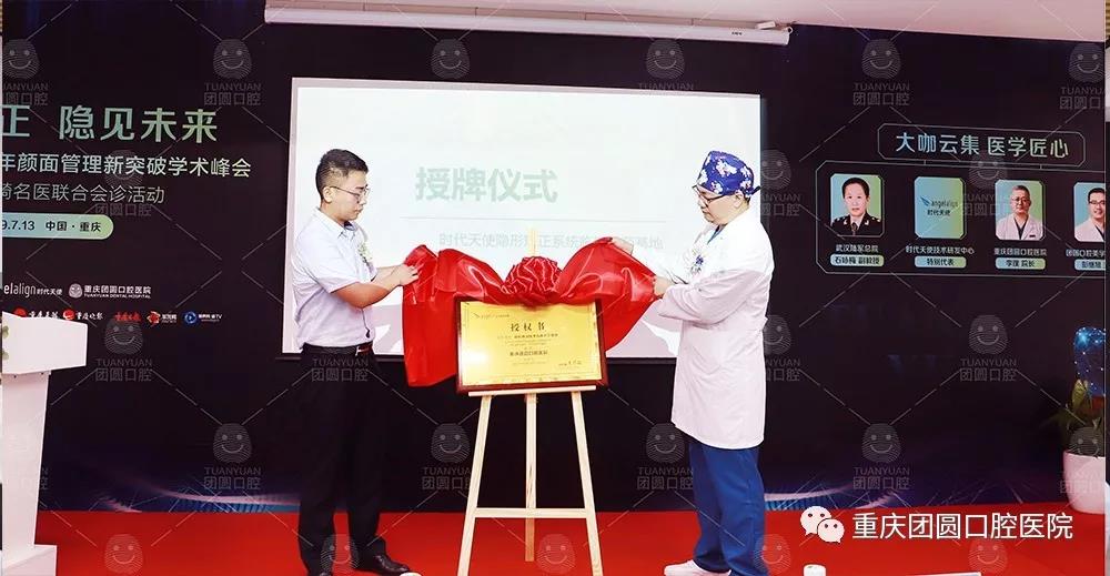 会上,时代天使技术研发中心特别代表与我院美学矫正中心彭继旭主任共同完成了“时代天使隐形矫正系统临床示范基地”的授牌仪式。作为中国隐形矫正第一品牌的时代天使,与重庆团圆口腔医院达成深度合作,使得双方对为更多接受牙齿美学矫正的朋友带来更高效、更个性化的矫治服务,塑造更多自信而完美的笑容充满了期待。
