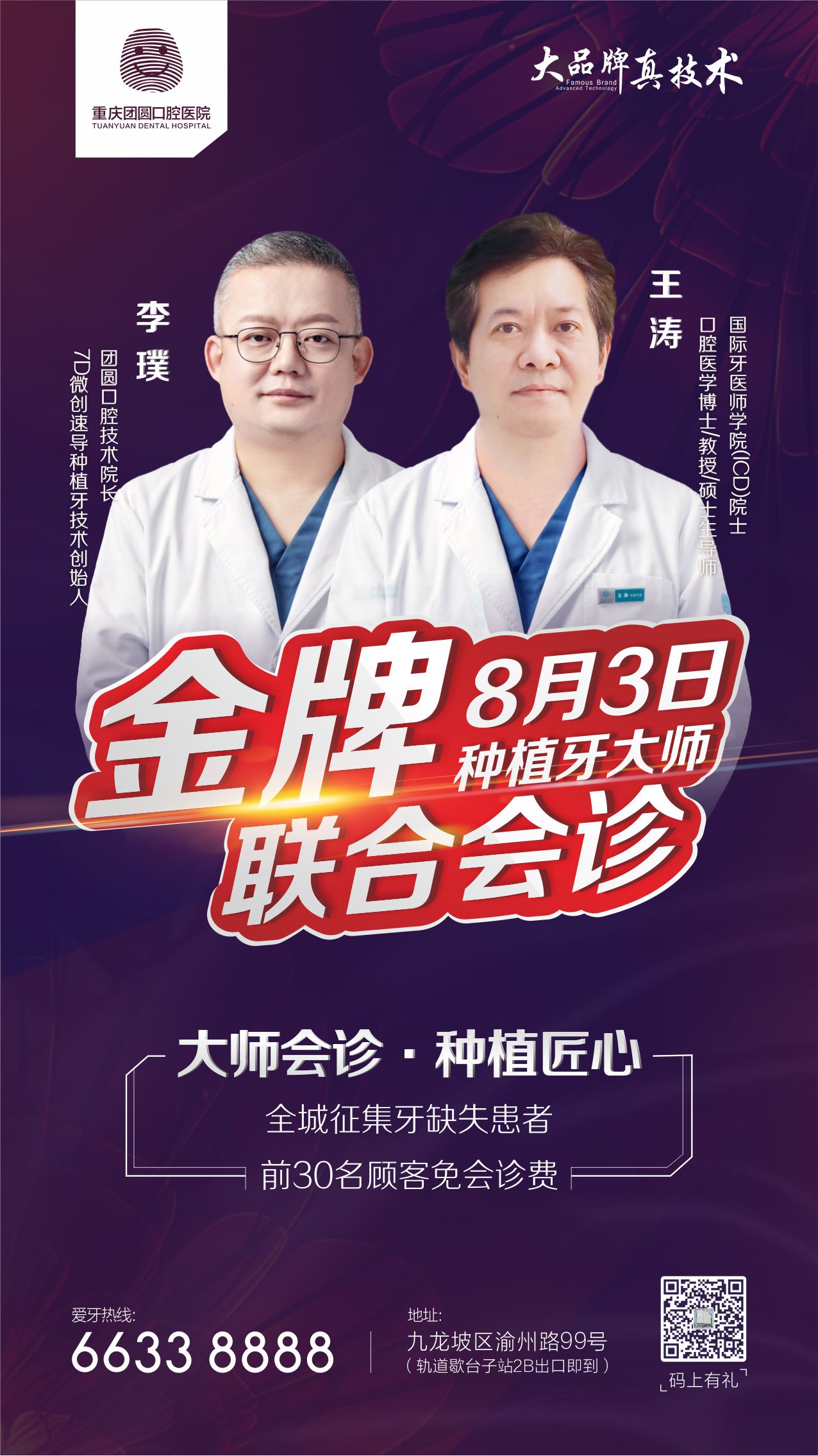 2、前30名顾客,享种植专家王涛博士李璞院长联合免费会诊;