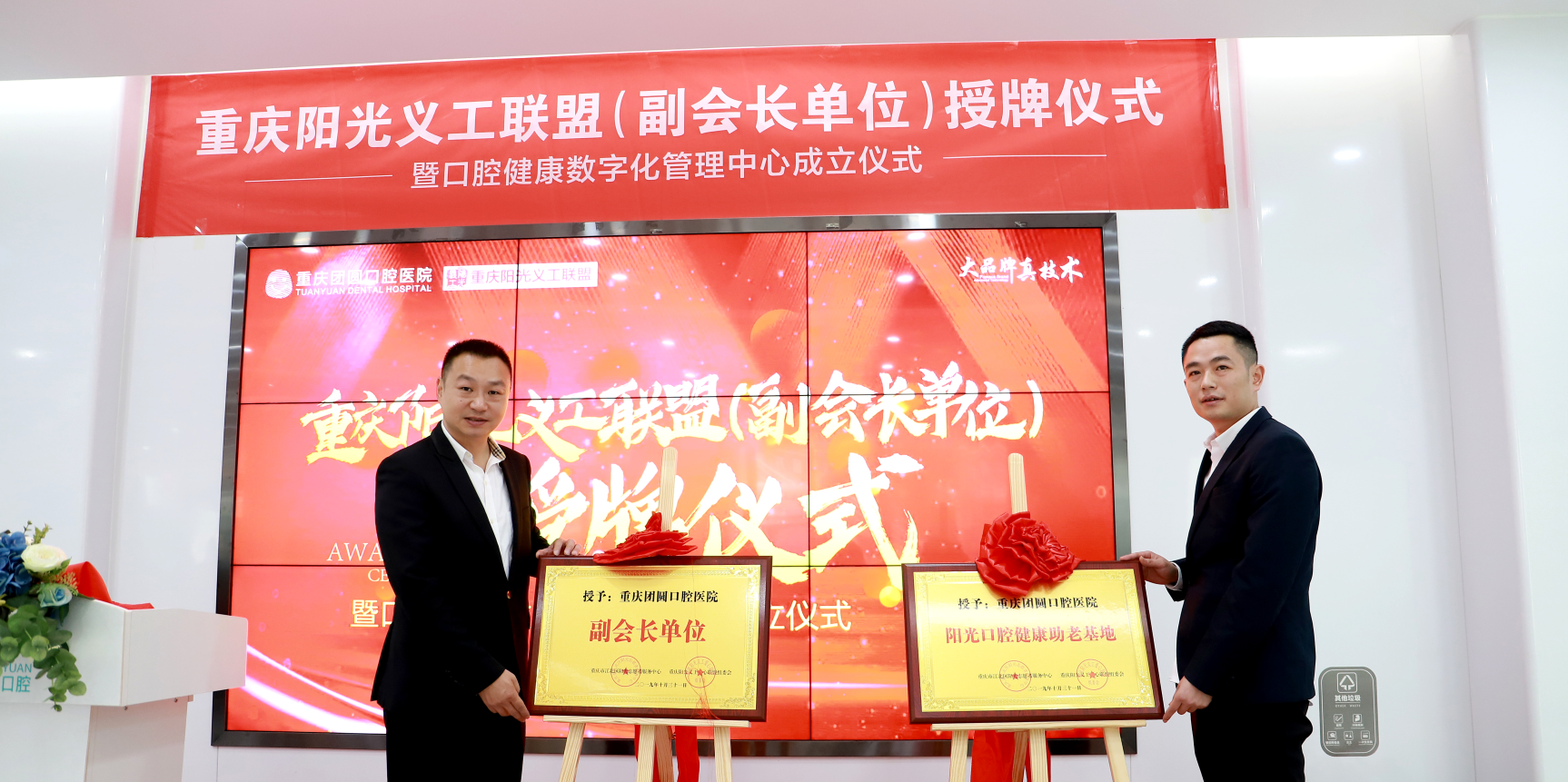 重庆市阳光义工爱心联盟组委会和重庆市江北区阳光志愿者服务中心联合授予团圆口腔医院“副会长单位”与“阳光口腔健康助老基地”,在近300名嘉宾的共同见证下数字化管理中心正式成立,也标志着我院种植技术将更精准、更安全、更快捷!